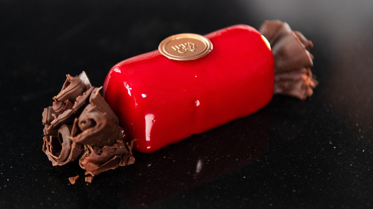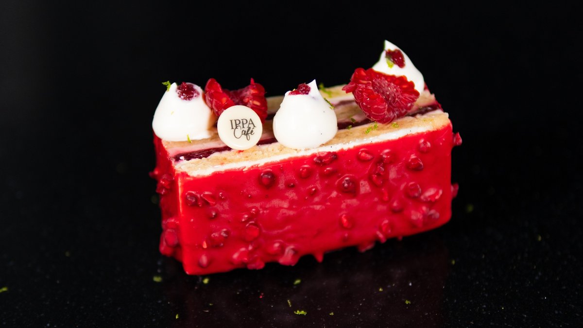 Malinový dort stojí na bezlepkovém vanilkovém korpusu, je plněný vanilkovou a malinovou ganache a malinovým konfitem. Dort je obalený malinovou čokoládou s kousky křupavých malin a ozdobený čerstvými malinami.