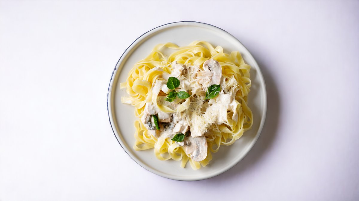 Tagliatelle, kuřecí maso, houbová omáčka