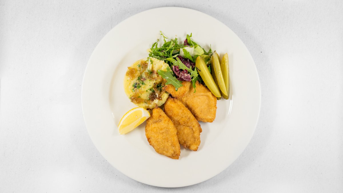 Smažené řízečky z vepřové panenky s jemnou bramborovou kaší