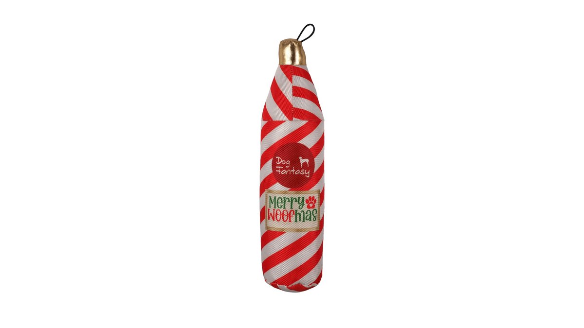 Hračka Dog Fantasy Winter Tale láhev pískací, šustící červeno-bílá 28cm
