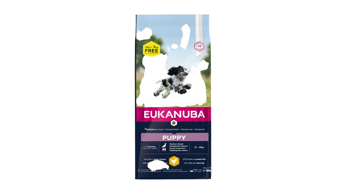 Eukanuba Puppy Medium 15kg + 3kg zdarma