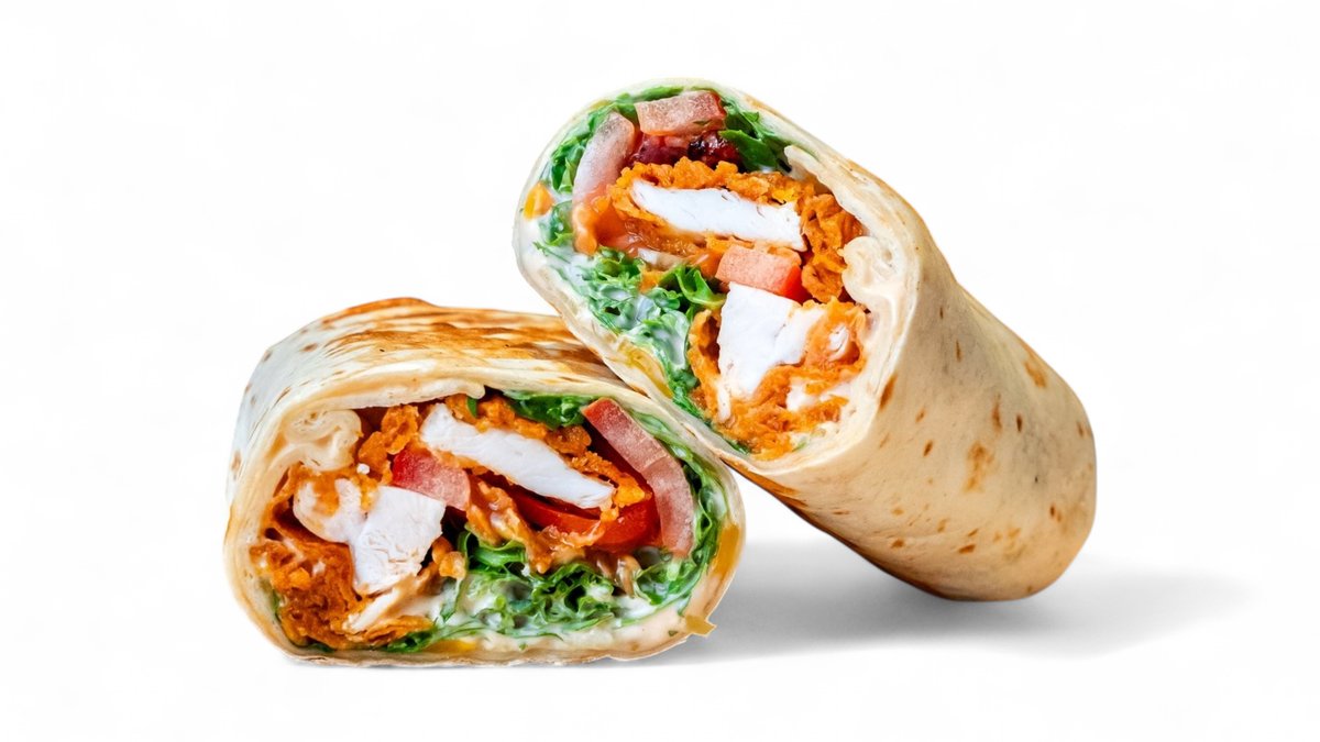 Šťavnatý wrap plný 150 g hovězího masa, plátku cheddaru, čerstvého salátu, tatarské omáčky, sýrového dipu a hranolek. Ideální volba pro masožravce.