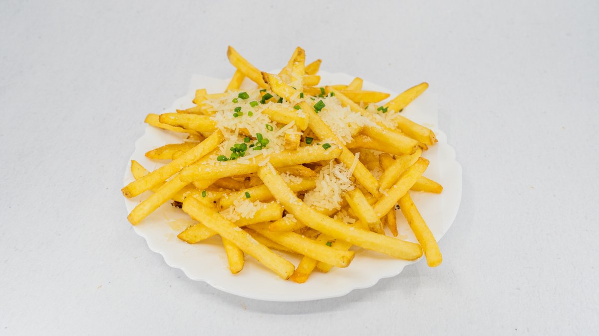 Hranolky s bohatou porcí rozpuštěného sýra – klasika, která nikdy nezklame.