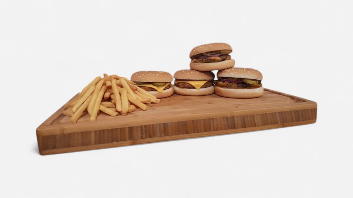 4x cheeseburger jako znáte od žlutých oblouků a porce hranolek. 100% hovězí maso, Tohle rozhodně zasytí.