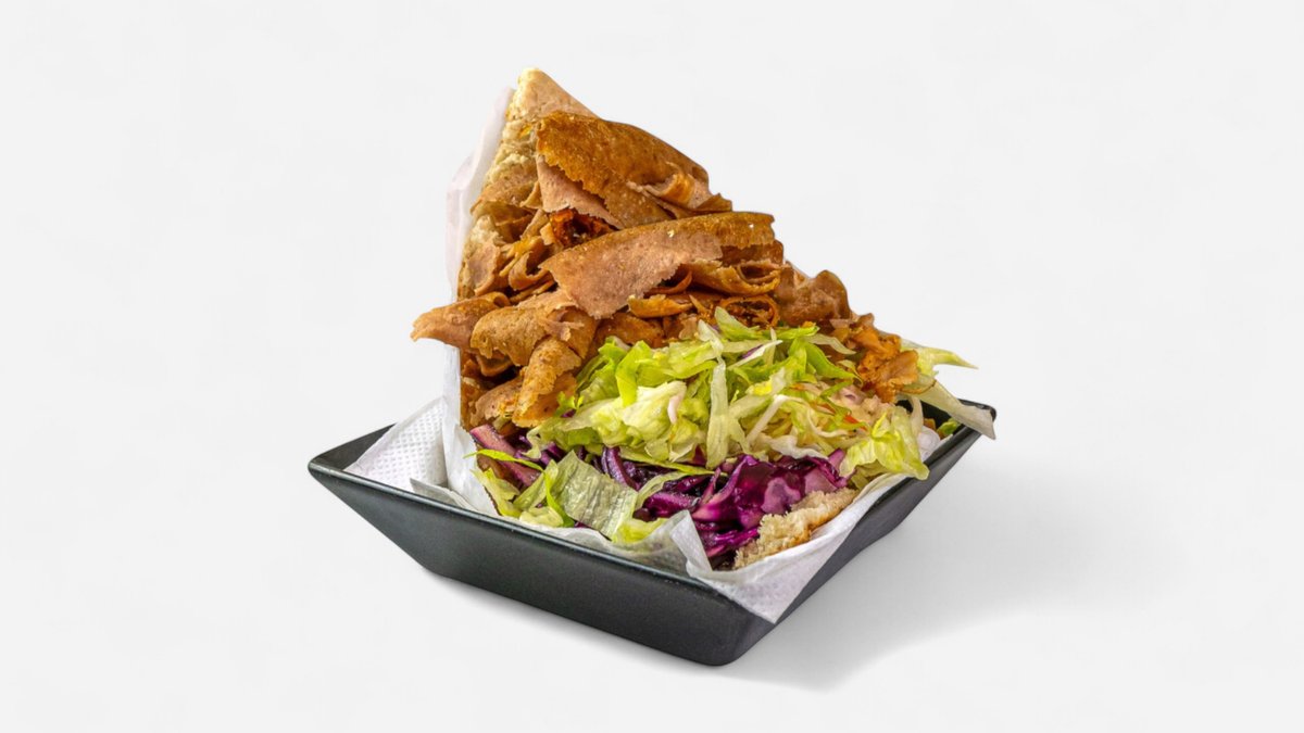 maso, salát, rýže, dresink, na výběr malý / velký kebab box