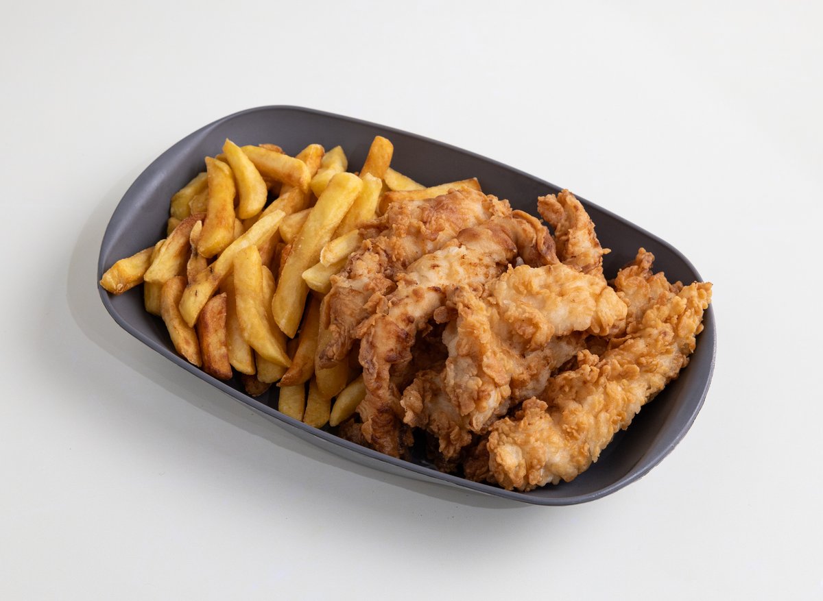 křupavé stripsy a porce domacích hranolek