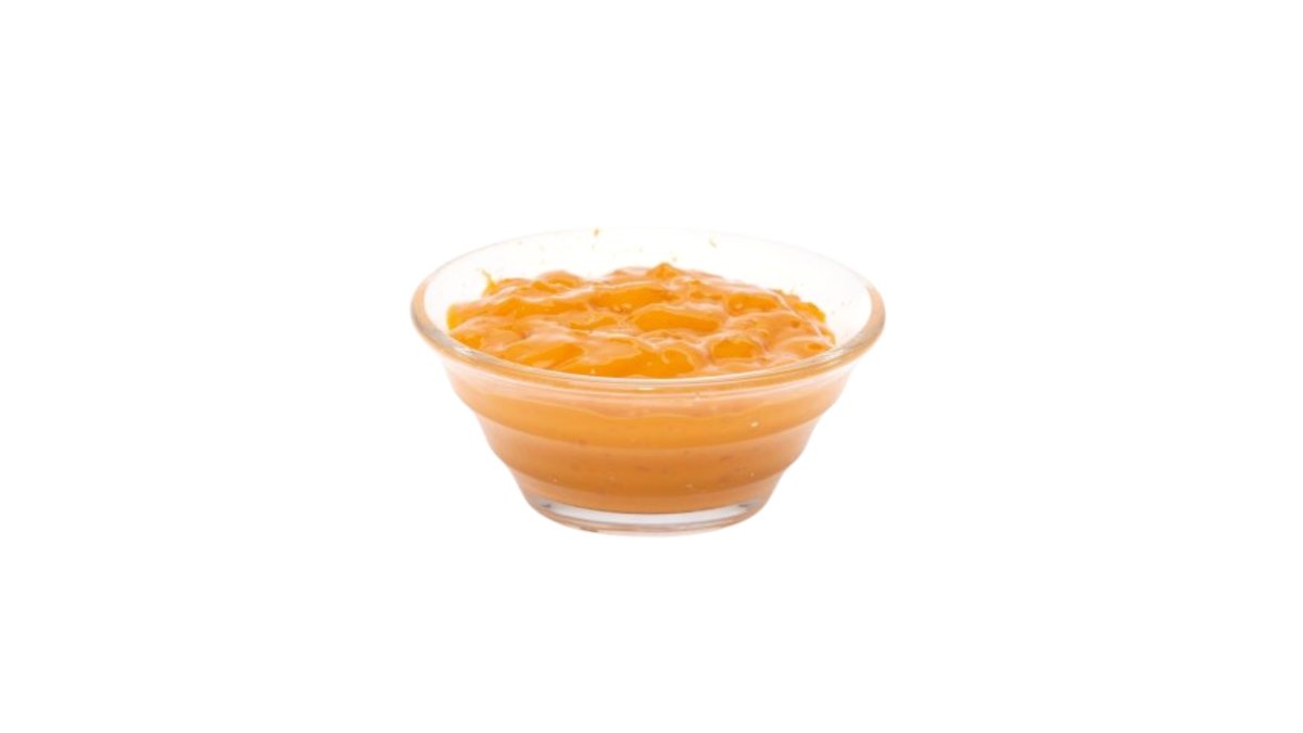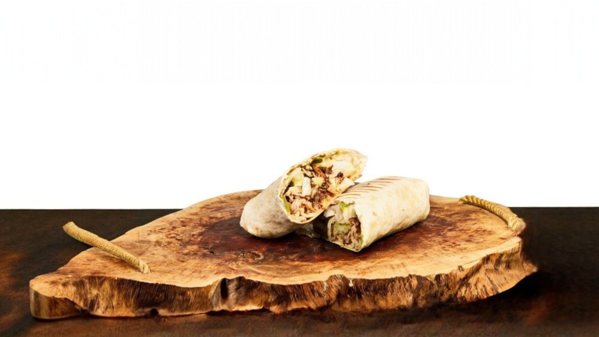 Tortilla, mexická salsa, sypaný čedar, mix salátů, okurka, paprika, rajče, BBQ Honey Chipotle omáčka, pikantní kuřecí stripsy