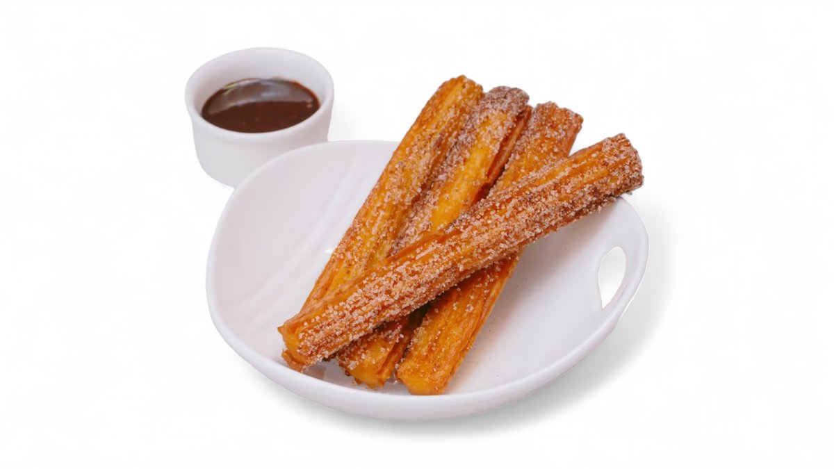 Churros 100g (3ks) obalené ve skořicovém cukru, karamelová omáčka