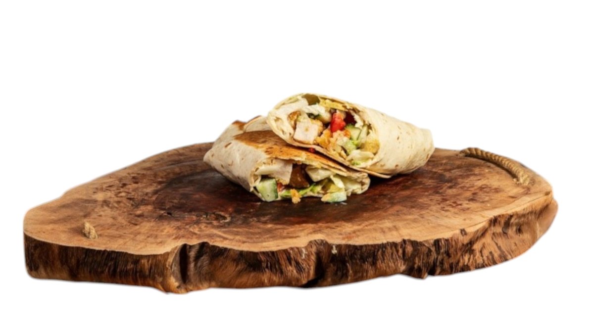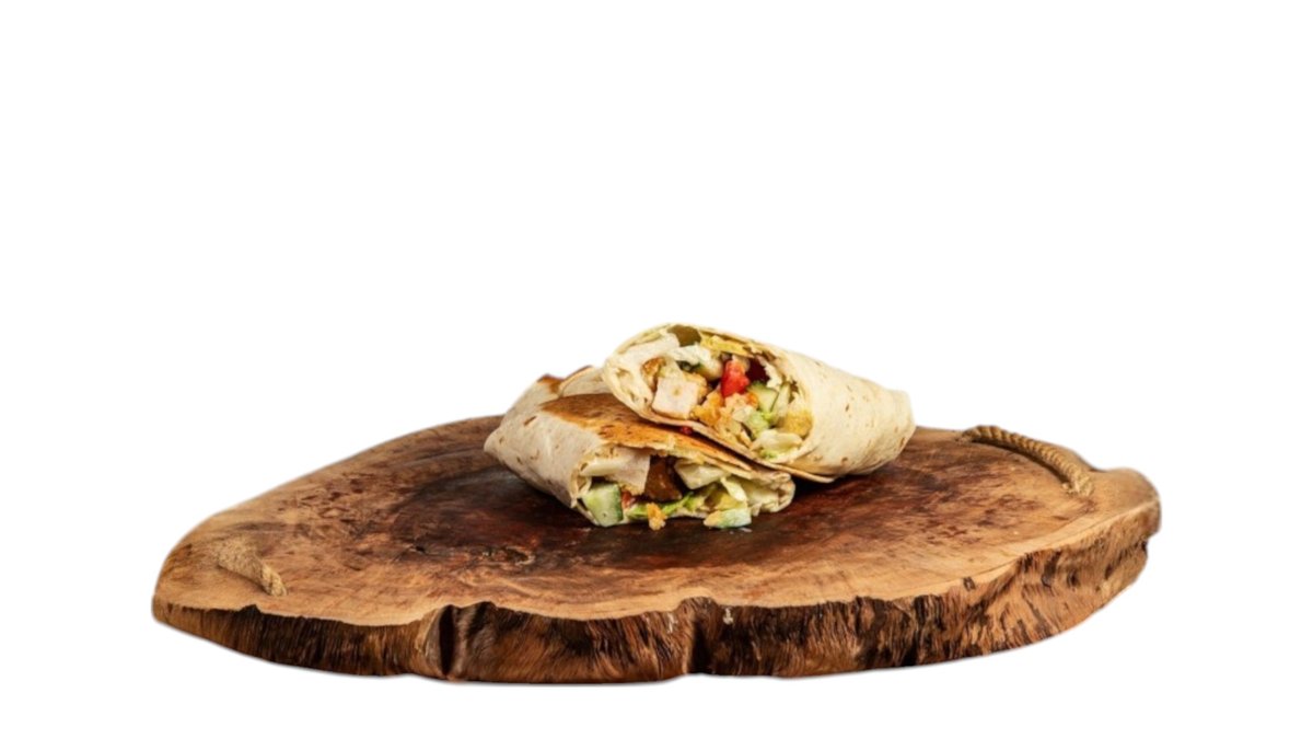 Tortilla, jogurtovo-česnekový dresing, mix salátů, okurka, paprika, rajče, maso dle výběru