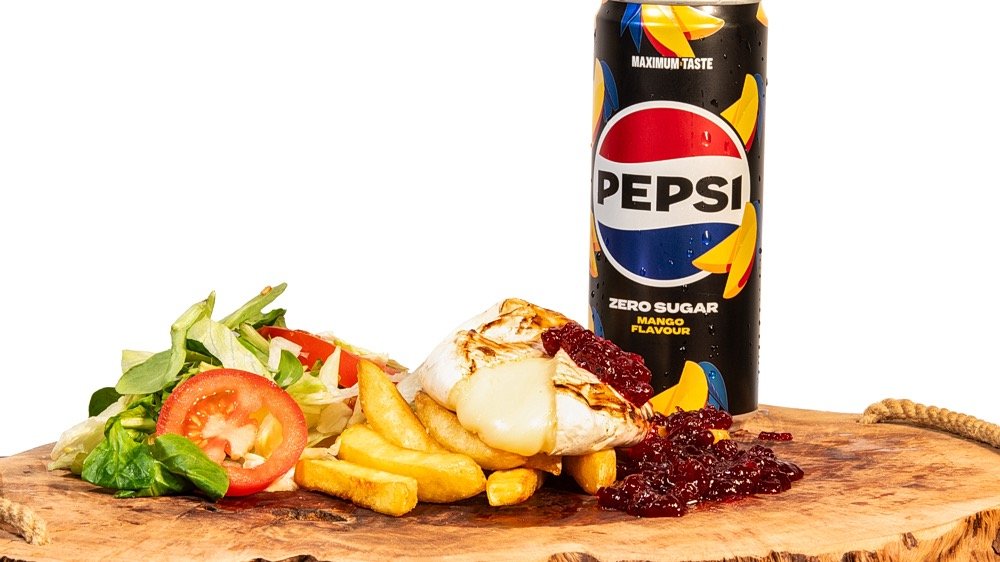 Vytvořili jsme pro vás náš signature burger. Takže tenhle nadupaný kousek se skládá z sezamové bulky, majonézy, cibulového chutney, polníčku, kuřecího prsa a samozřejmě výtečného sýru s modrou plísní