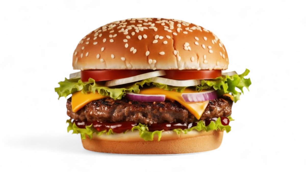 Hovězí maso (150g), sýr chedar, ledový sálat, majonezá a kečup
