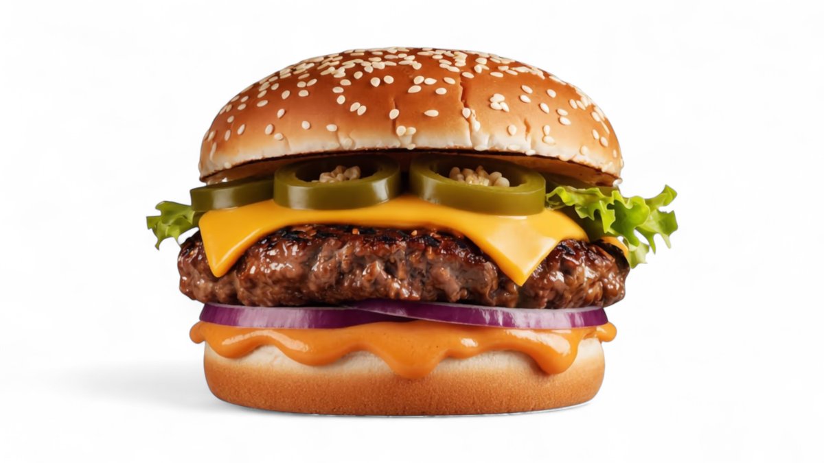 Hovězí maso 150g, ledový sálat, jalapeño, dip chedar, červená cibule, samurai dresink
