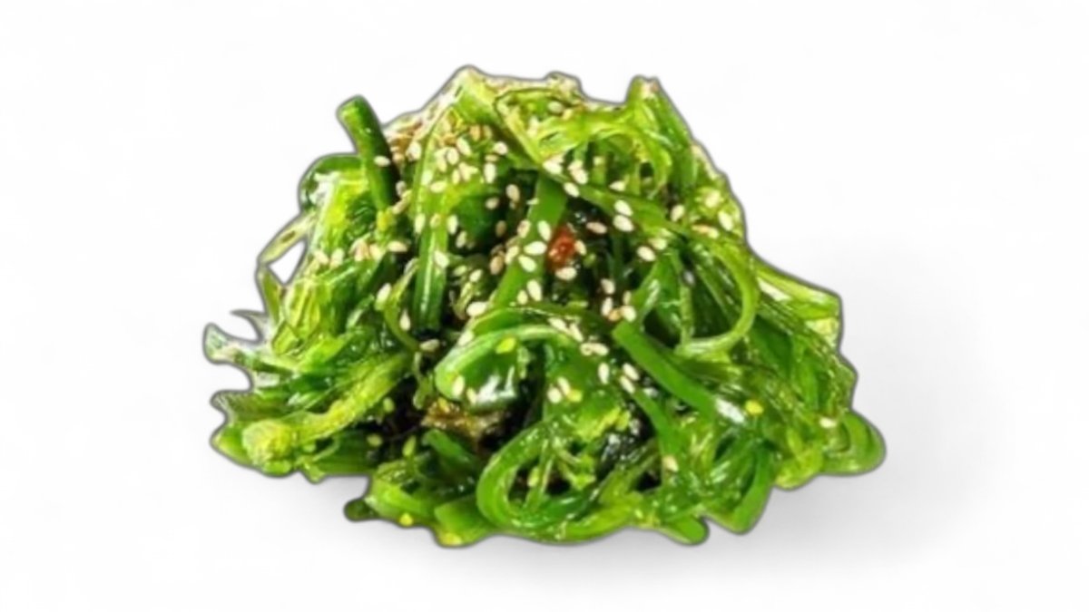 Rýže, okurka, avokádo, eidam, wakame, citron, unagi omáčka a sezam.