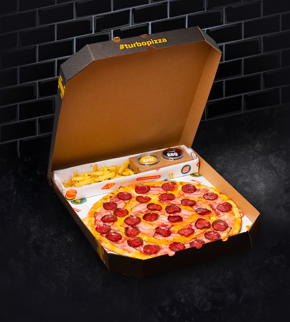 Turbo Pizza je moderní fastfoodová franšíza zaměřená na rychlost, kvalitu a výrazné chutě. Nabízí širokou škálu pizz – od klasických až po celozrnné či bezlepkové varianty – takže si vybere opravdu každý. Kromě pizzy najdete v nabídce také šťavnaté burgery, křupavé kuřecí stripsy, sýrové hranolky, cibulové kroužky i oblíbené XXL boxy ideální pro sdílení s přáteli či rodinou. Ať už hledáte rychlý oběd nebo vydatné menu na večer, Turbo Pizza přináší chuť, na kterou se těšíte – v rychlém a spolehlivém balení. Nezapomeňte přidat oblíbený dip, nápoj nebo dezert pro dokonalý zážitek.