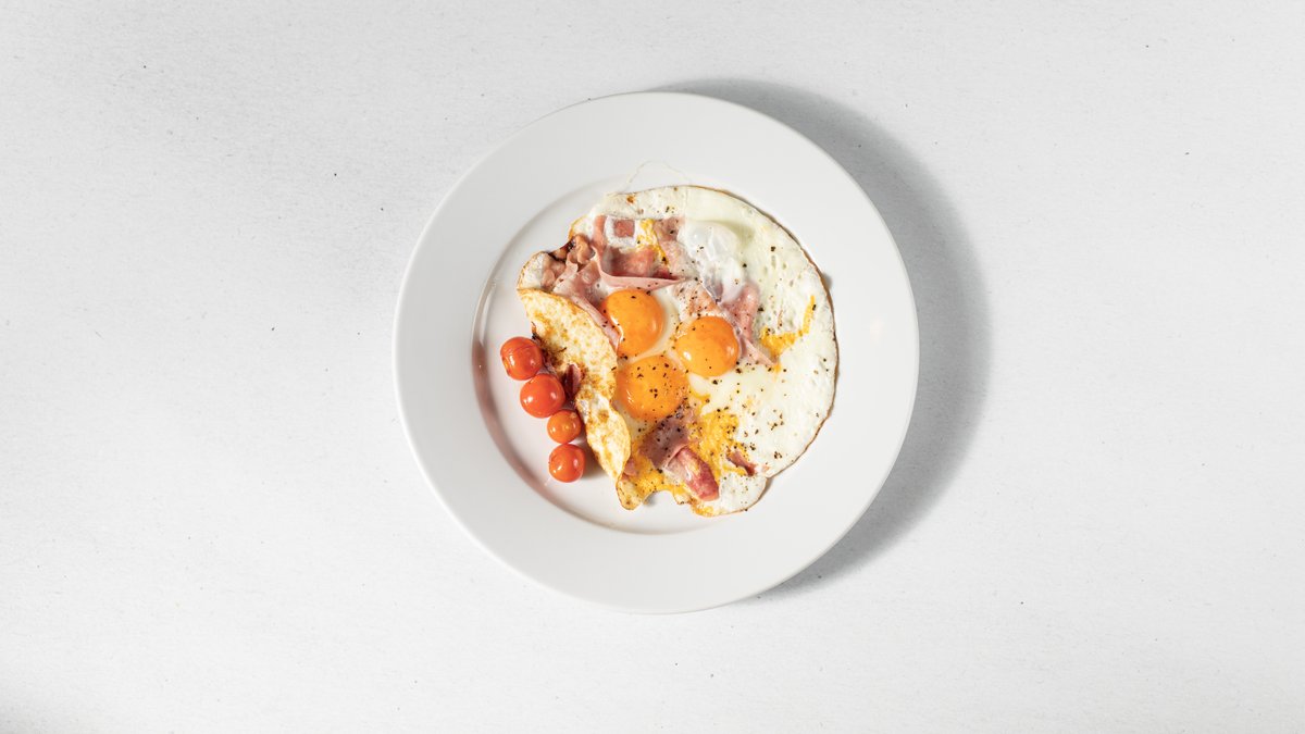 3ks čerstvých vajec, varianta se šunku nebo slaninou a 13