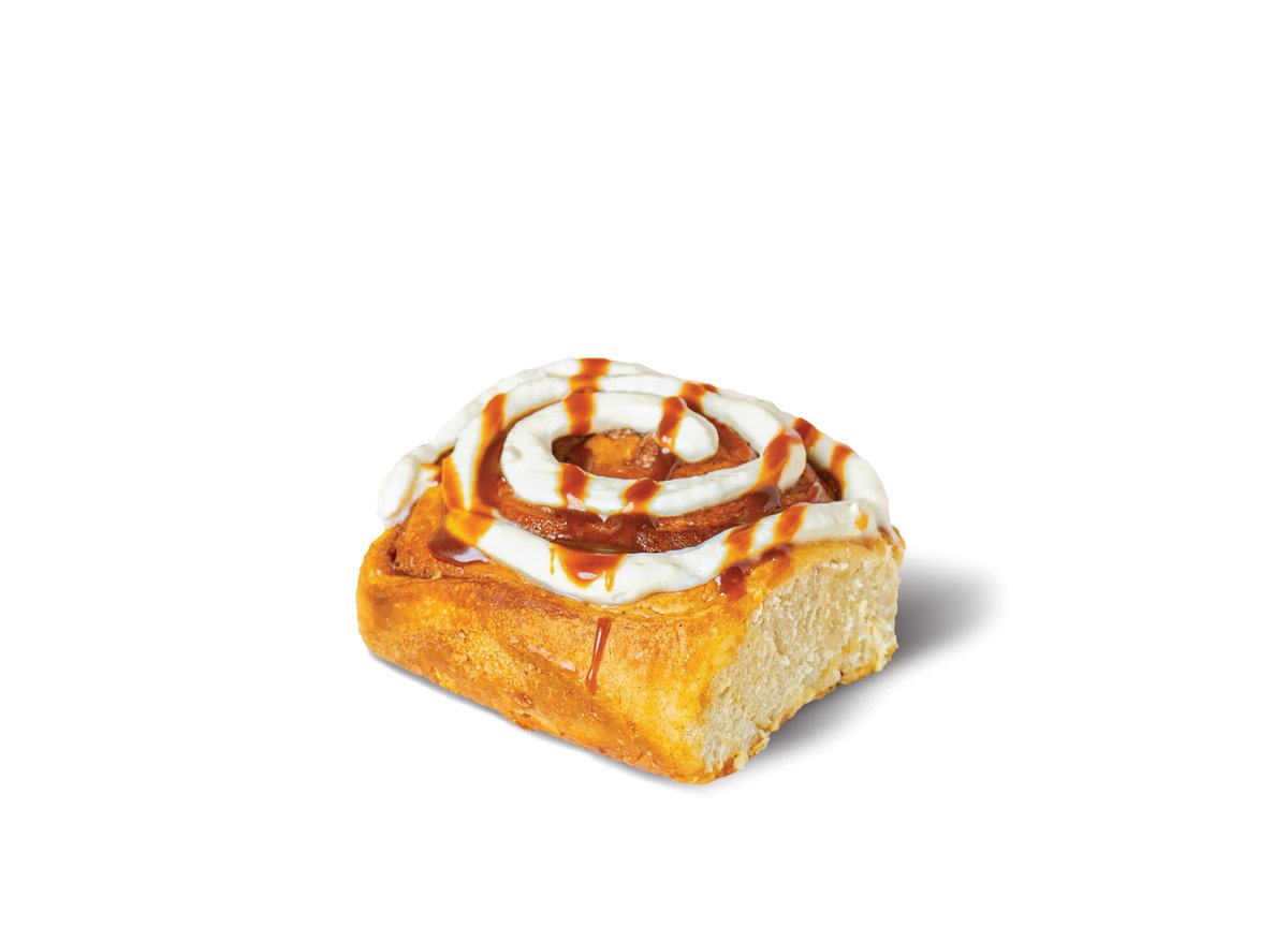 Vláčné pečivo ve tvaru šneka z kynutého těsta s náplní z cukru a skořice. Je zdobený krémovou polevou a Toffee Caramel sirupem.