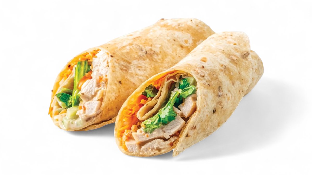 Lehká pšeničná tortilla plněná šťavnatými kousky kuřecího masa marinovaného na asijský způsob, doplněná o křupavý mix zeleniny, čerstvou okurku, ledový salát, mátu a koriandr. Sendvič je dochucený hoisin omáčkou a křupavou smaženou cibulku, které umocňují chuťový zážitek s odkazem na asijsou kuchyni.