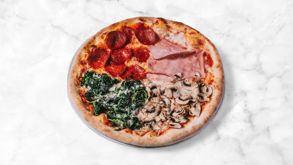 rajčata, mozzarella, šunka, žampiony, čerstvý špenát, salám (1, 7)
