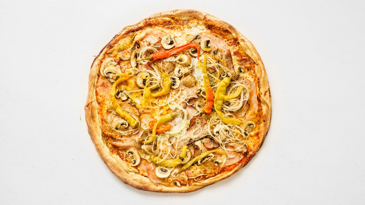 tomato, mozzarella, slanina, žampiony, feferonky