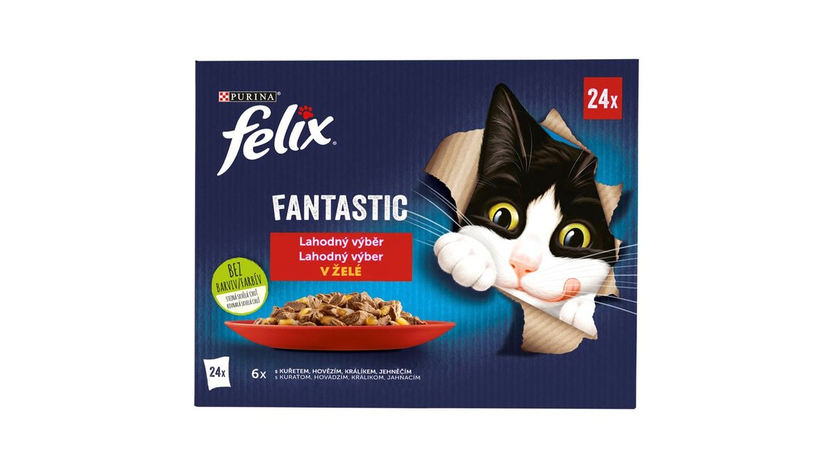Felix Fantastic kapsičky pro kočky kuře, hovězí, králík, jehněčí v želé 24 x 85g