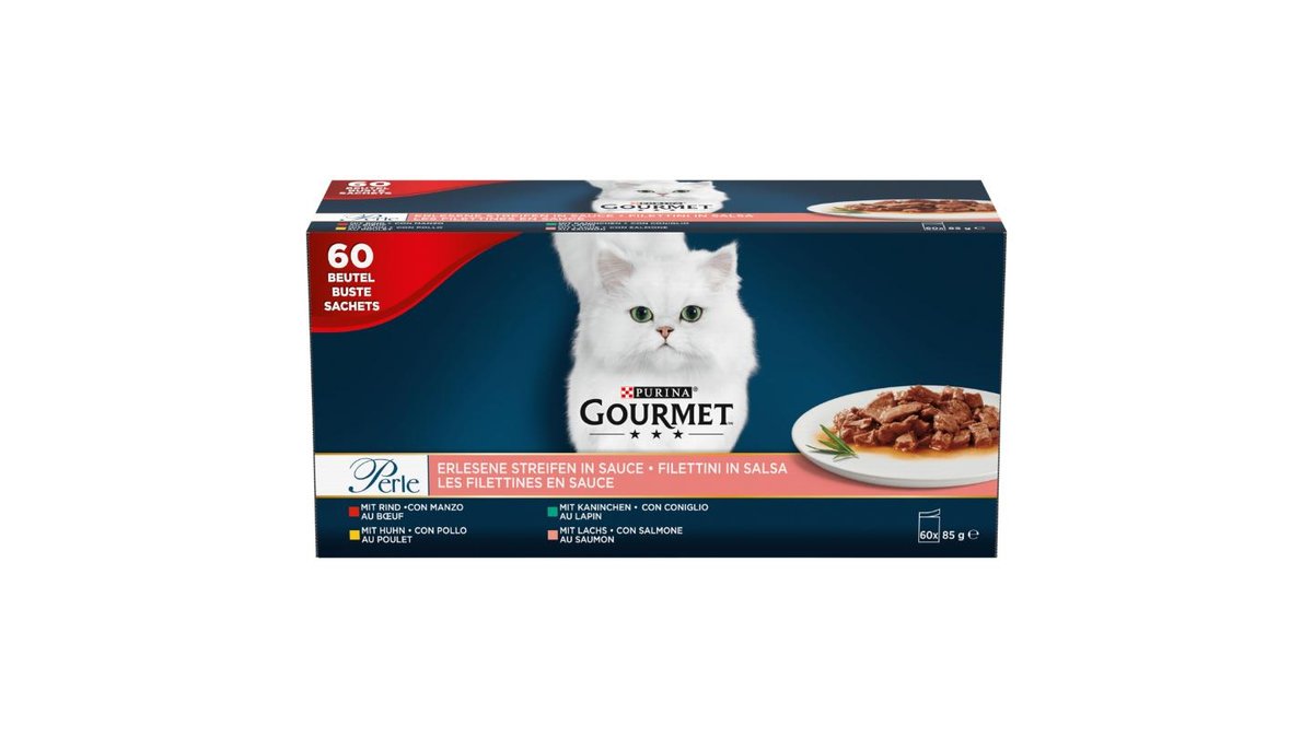 Gourmet Perle kapsičky pro kočky hovězí, kuře, králík, losos ve šťávě 60 x 85g