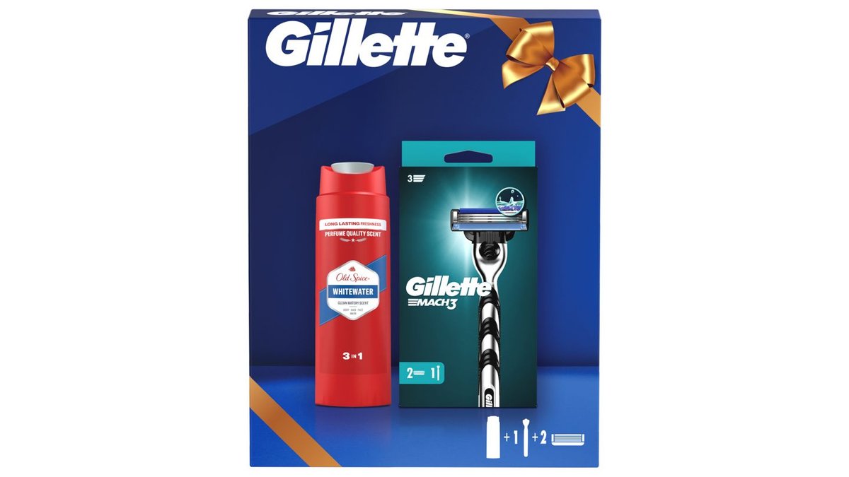Gillette Dárková Sada: Gillette Mach3 Pánský Holicí Strojek + Old Spice Whitewater 250 ml, 3 v 1
