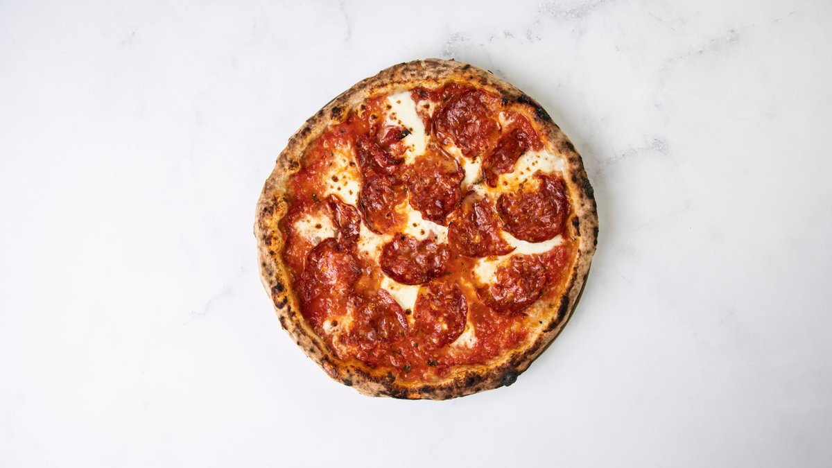 Rajčatové sugo, Mozzarela, Paprikový salám, Eidam