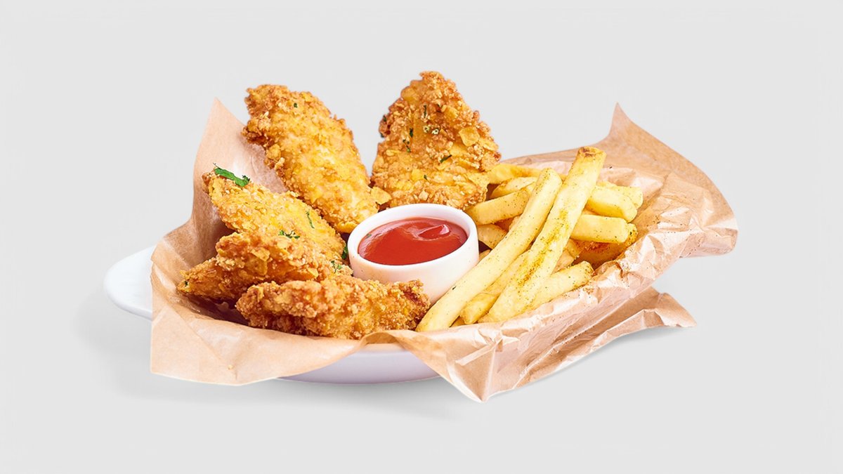 M8. Kuřecí kousky s hranolkami + 0,4l nápoj