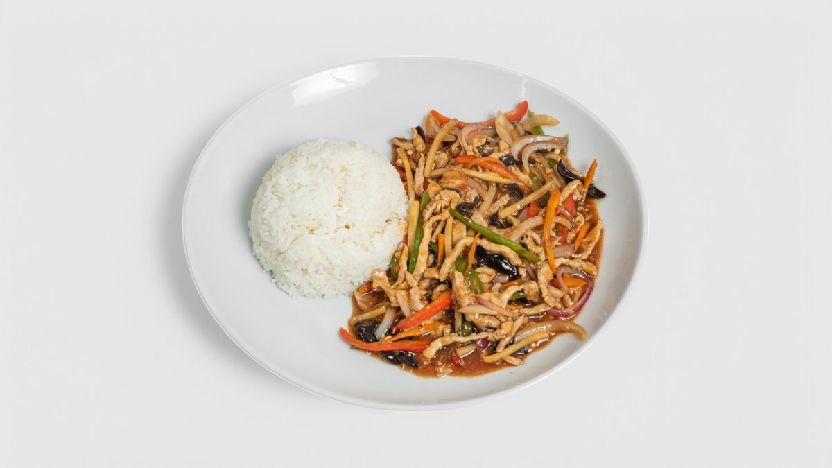 M5. Smažené rýžové nudle s kuřecím masem + 0,4l nápoj