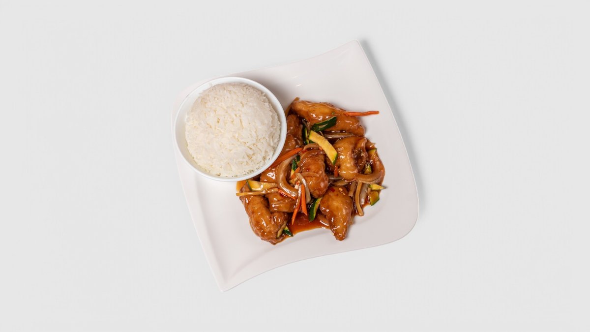 M1. Smažená rýže s kuřecím masem na kari + 0,4l nápoj
