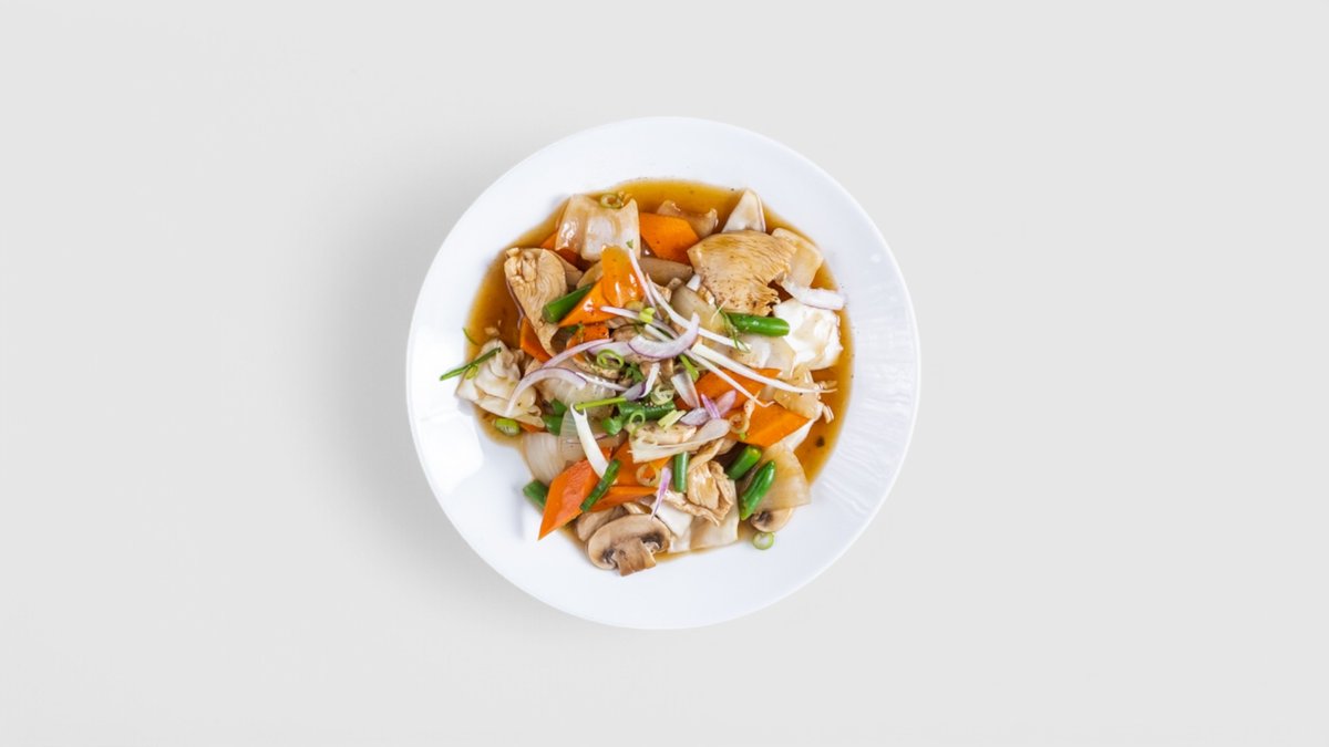 M2. Smažené nudle s kuřecím masem + 0,4l nápoj