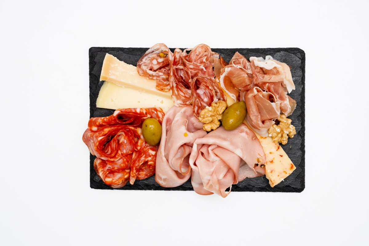 Italská dušená šunka Prosciutto cotto + krém z černých lanýžů + plátky parmazánu + artyčoky