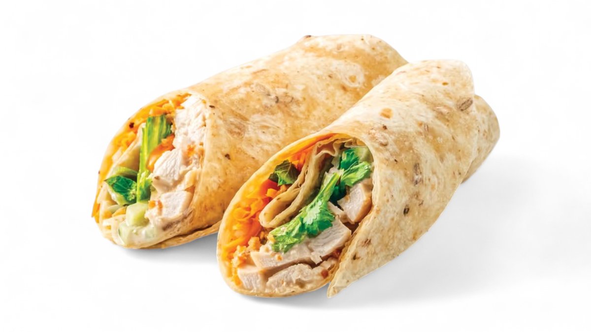 Lehká pšeničná tortilla plněná šťavnatými kousky kuřecího masa marinovaného na asijský způsob, doplněná o křupavý mix zeleniny, čerstvou okurku, ledový salát, mátu a koriandr. Sendvič je dochucený hoisin omáčkou a křupavou smaženou cibulku, které umocňují chuťový zážitek s odkazem na asijsou kuchyni.