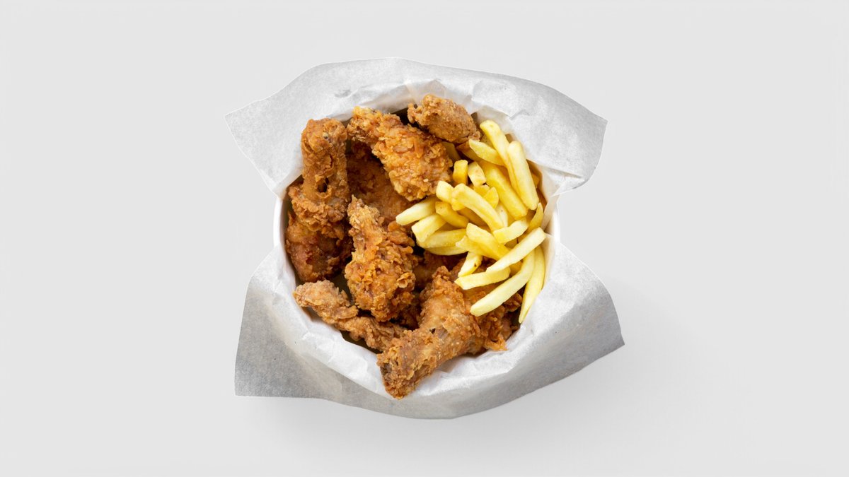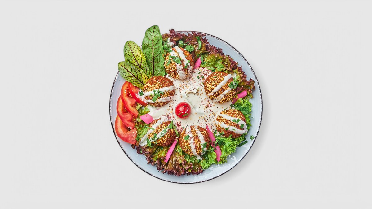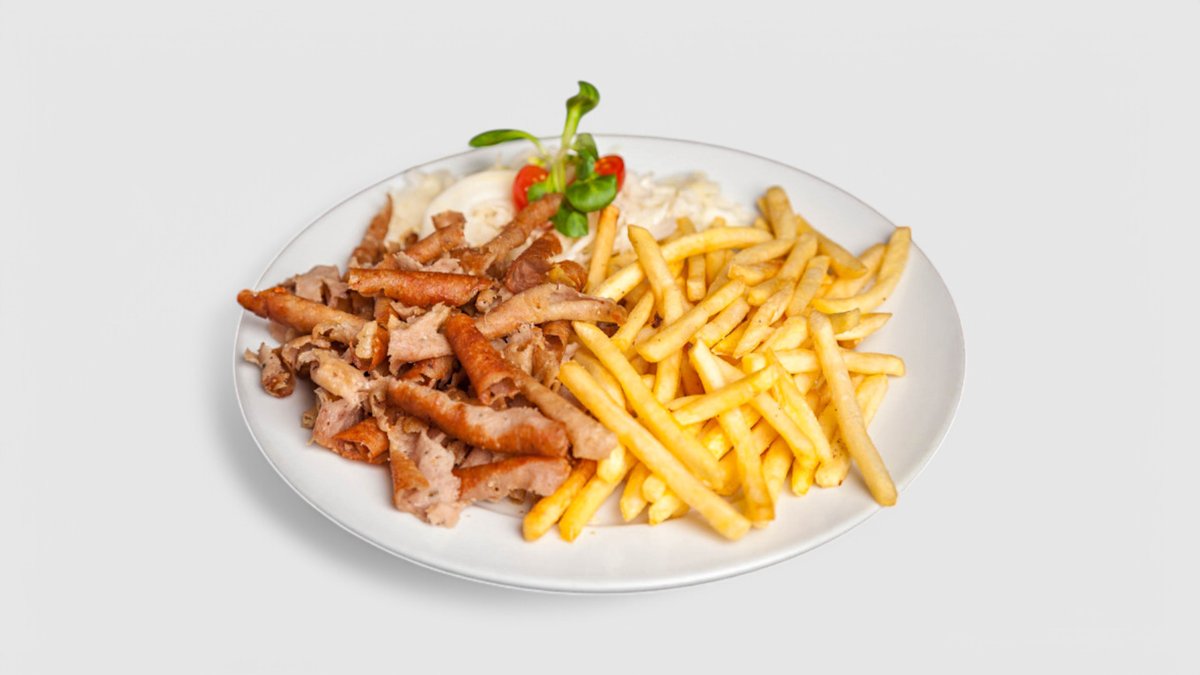 Zeleninový salát, döner/gyros 100 g, hranolky, omáčka