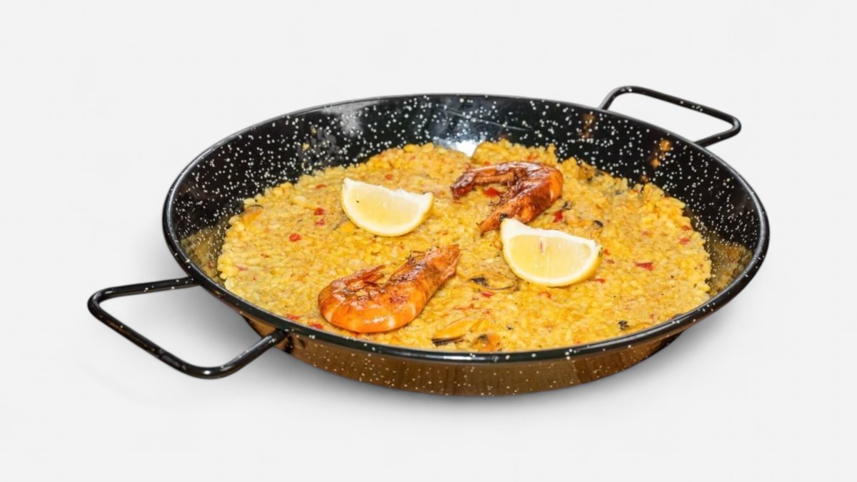 Tradiční španělská paella s mořskými plody, šafránovou rýží, krevetami a kalamáry, 200 g (A: 2, 4, 9, 12, 14)