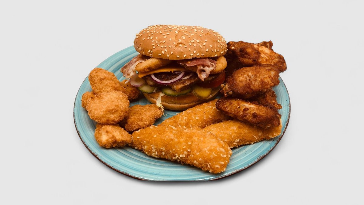 Burger 6ks křídel+3ks stripsu+6ks kuřecích nuget