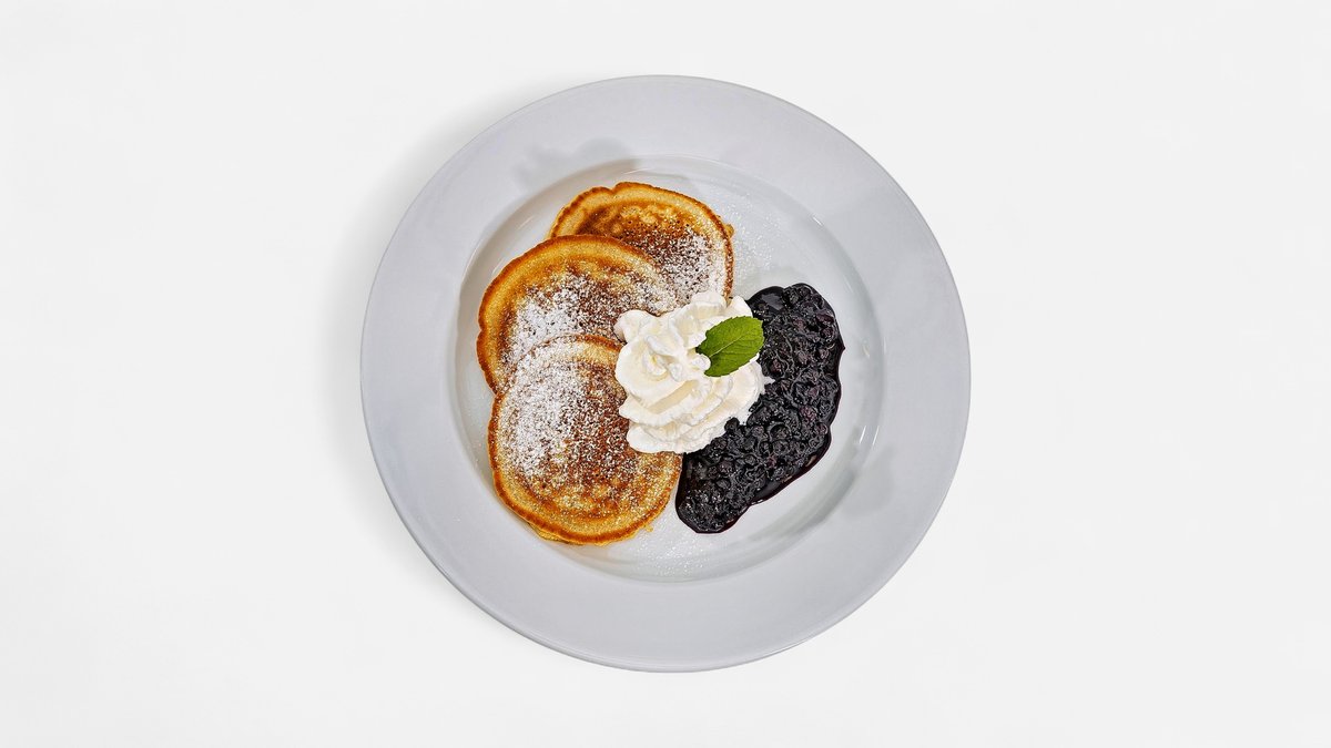 Složení: 3 ks lívance (hladká mouka, vejce, kypřící prášek, mléko), borůvková omáčka (povařené borůvky, cukr krupice), máslo, smetana ke šlehání, moučkový cukr 180g
