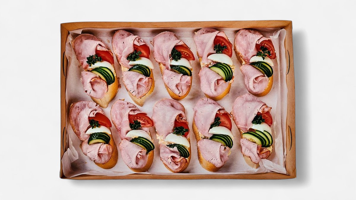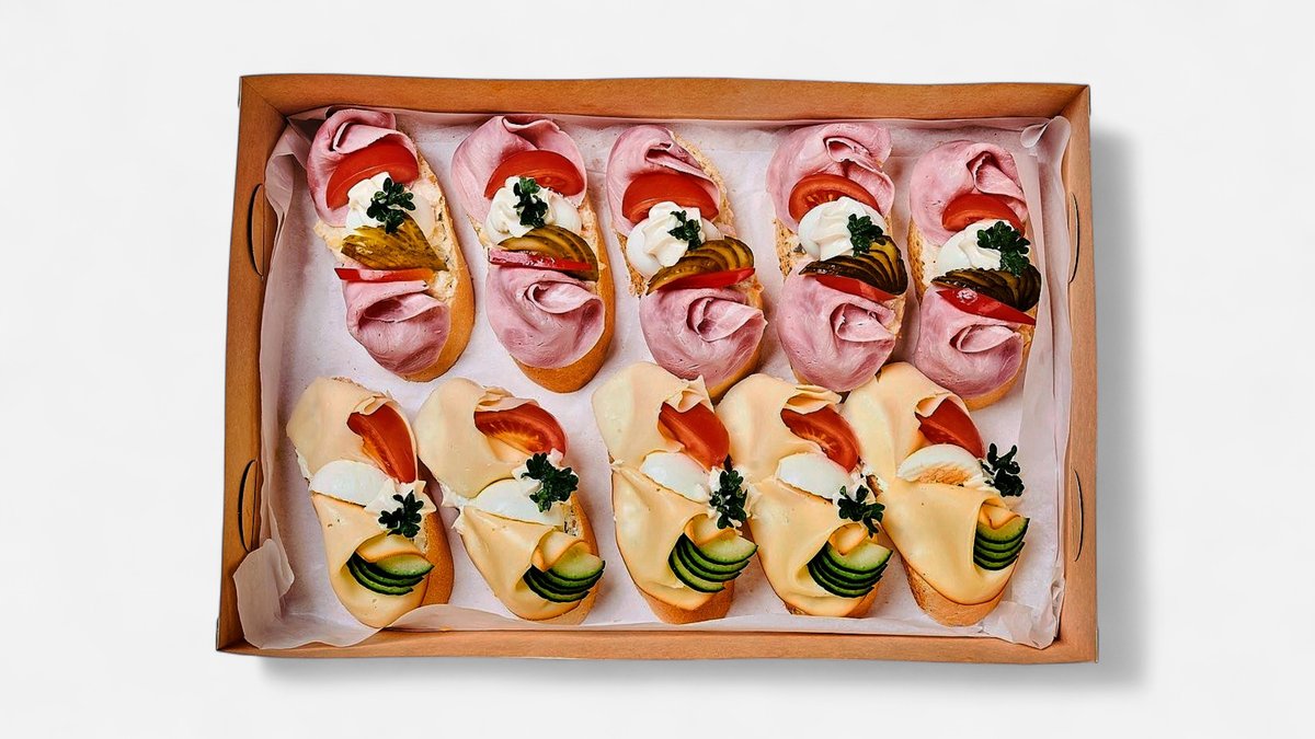 Složení: vepřová šunka standard, sýr eidam, salám Herkules, máslo, rajčata, okurka čerstvá, petrželka 190g