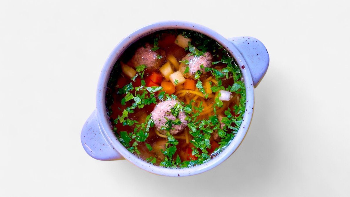 hovězí zadní, vaječné nudle, kořenová zelenina, játrové knedlíčky, petržel