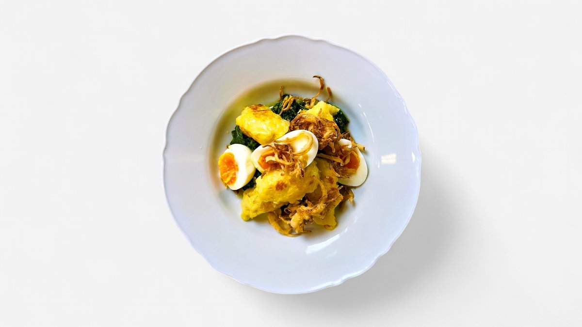 špenát, vyzrálá hovězí plec, chlupatý knedlík, vejce