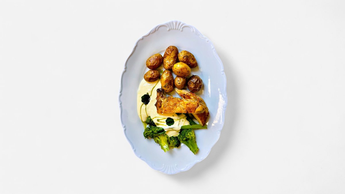 kuře supreme, zauzený mladý brambor, brokolice, holandská omáčka