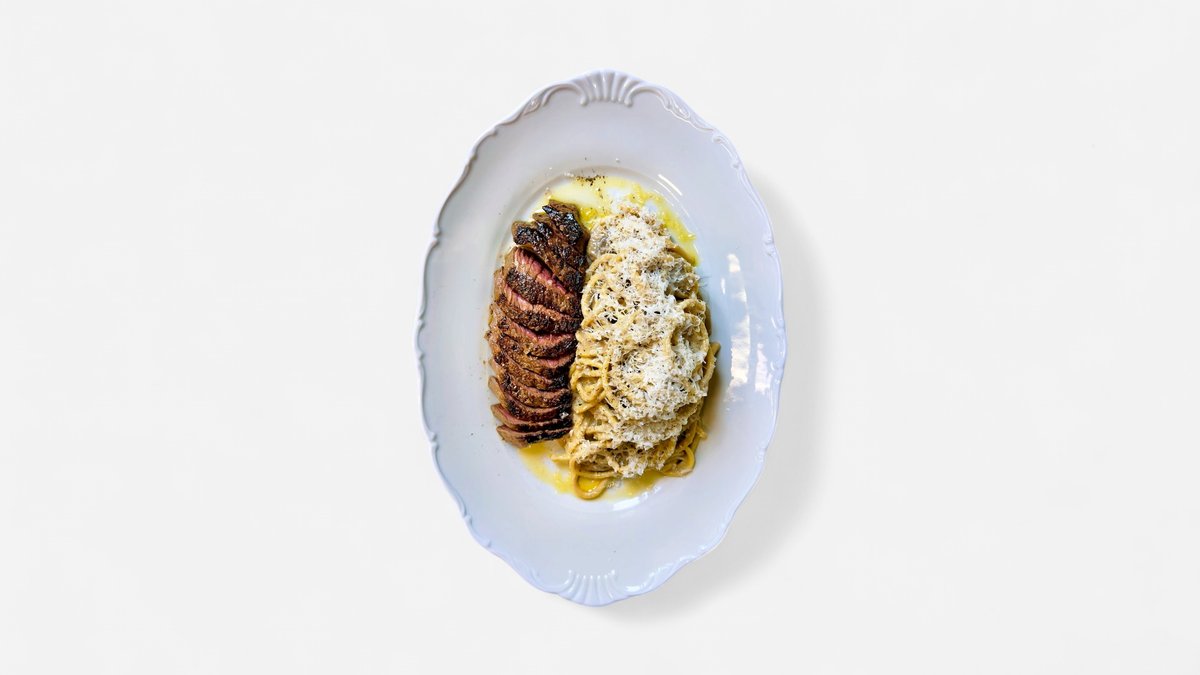 usa prime beef Rump steak, čerstvé špagety, žampionová omáčka, pecorino