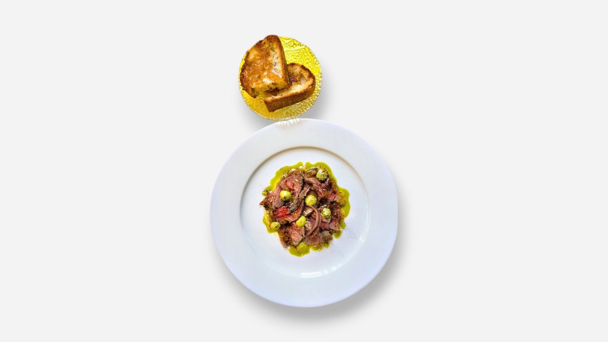 roastbeef, ančovička, černý česnek, kváskový chléb