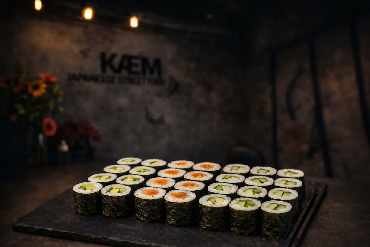 Mix 54 ks: maki (24 ks), nigiri losos & tuňák (12 ks), uramaki California & Alaska (16 ks) + 1× onigiri dle našeho výběru 🍙 K tomu 2× mango limonáda 😋 Zázvor, sójová omáčka a wasabi v ceně