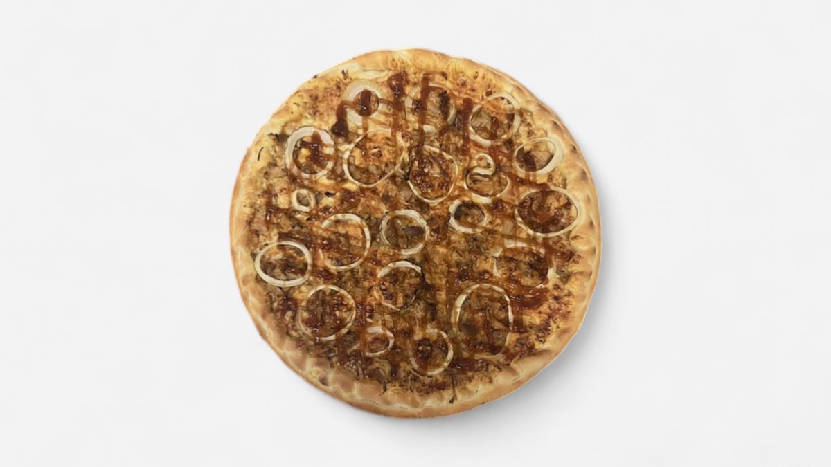 Tomatový zaklad, sýr, trhané vepřové maso, cibule, BBQ omačká, oregano