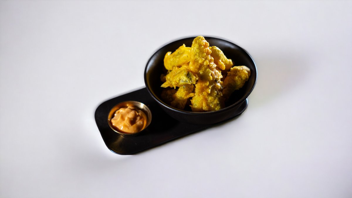 Objevte křupavé okurky v tempuře, smažené do zlatova a podávané s veganskou sriracha majonezou. Ideální pro vegany. Alergény:1