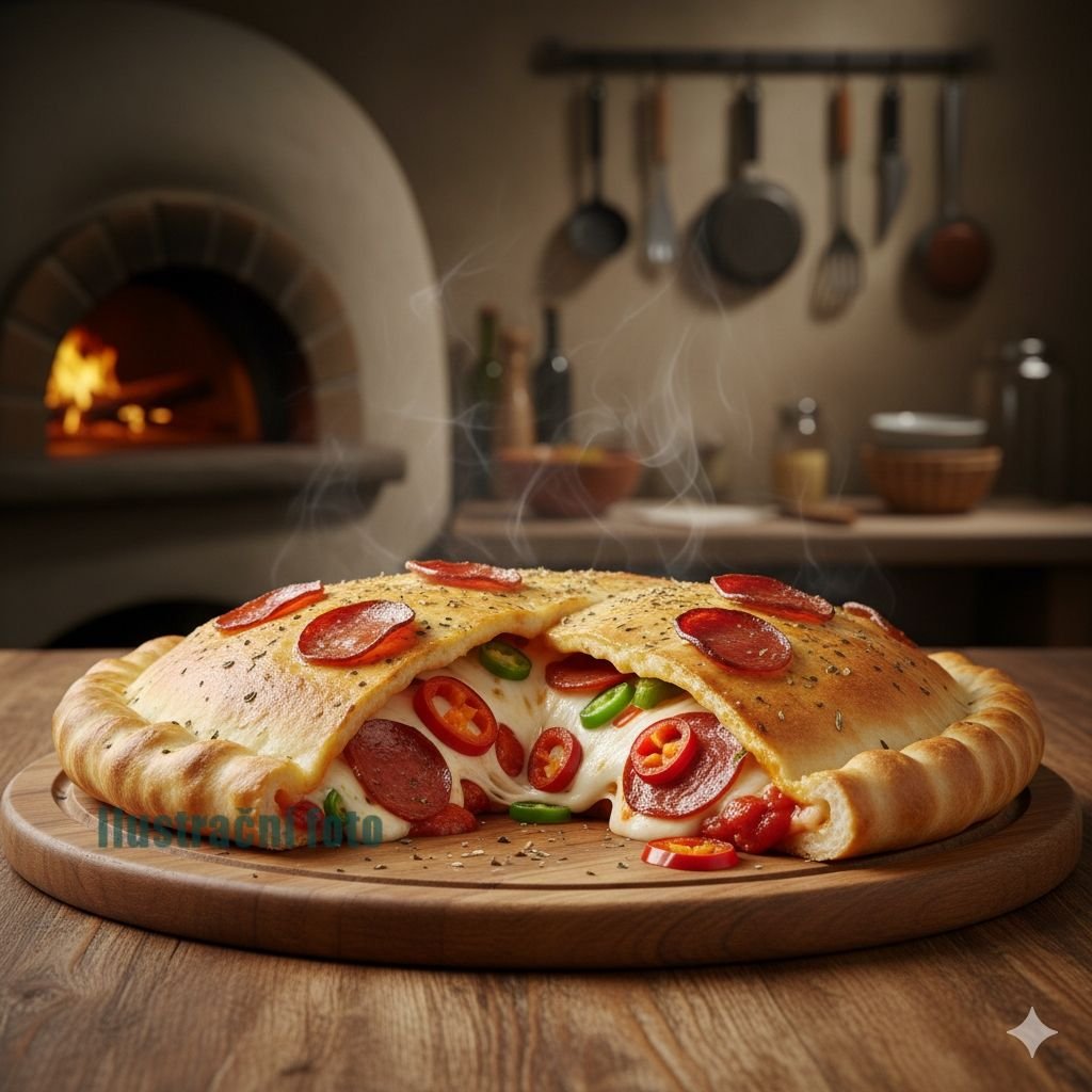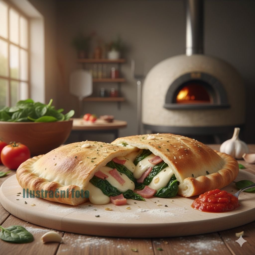 Calzone je v podstatě přeložená pizza ve tvaru půlměsíce, která se peče jako velká plněná kapsa. Díky tomu, že je náplň uzavřená, je krásně šťavnatá a sýry uvnitř zůstanou vláčné.
