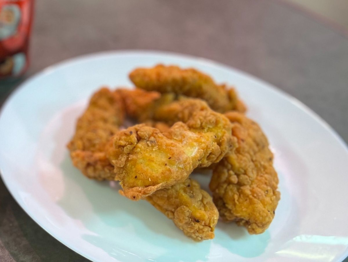 Smažené stripsy 10ks+hranolky+omáčka+pití