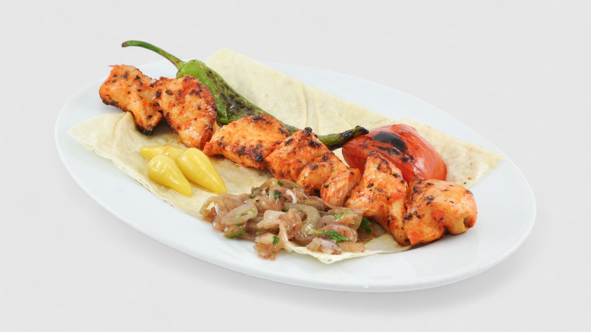 Střední ostré kuřecí mleté maso s indickým kořením, napíchnutí na železné jehle a pečení v indický pec (pálivé, halal)