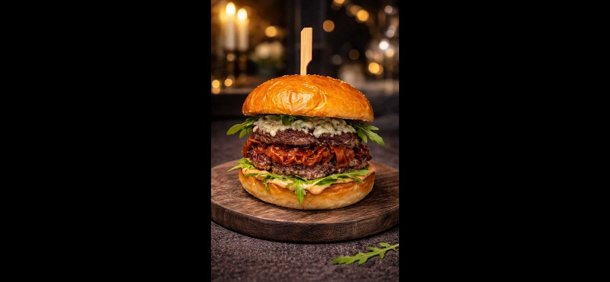 Dvojitá nálož šťavnatého hovězího chuck roll (2x150g) 💪, rozpuštěná niva, karamelizová cibulka, BBQ mayo, rukola a naše opečená brioche houska . 😋